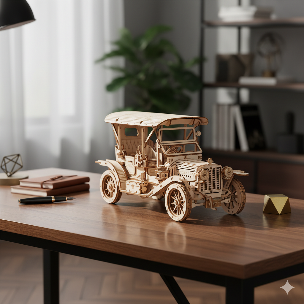 Assemble Robotime-ROKR 3D wooden puzzle to create a dashing retro car that’s the perfect ornament for vintage vehicle lovers.